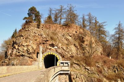 Die Lage der Burg nahe dem Stausee Seč erforderte den Bau eines Tunnels unter dem Berg zur Erhaltung der Straßenanbindung.