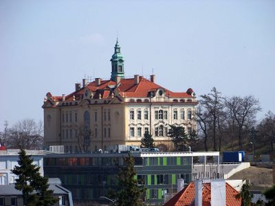 Das Vychovatelna-Gebäude steht im Prager Stadtteil Libeň und zeigt architektonische Elemente aus dem frühen 20. Jahrhundert.