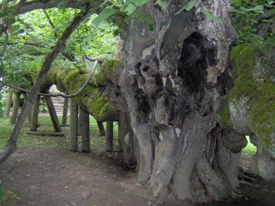 Der Baum wurde im 13. Jahrhundert gepflanzt und erlitt 1824 einen schweren Blitzschlag, der seine Höhe von etwa 20 Metern auf die heutige Höhe von 10 Metern reduzierte. Dieses Ereignis prägte sein Aussehen dauerhaft und machte ihn zu einem Zeugnis vergangener Naturgewalten.