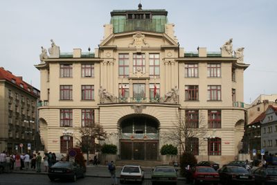 Architekt Osvald Polívka entwarf das Gebäude nach einem Wettbewerb 1904, dessen Bau 1911 als Finanzamt fertiggestellt wurde.