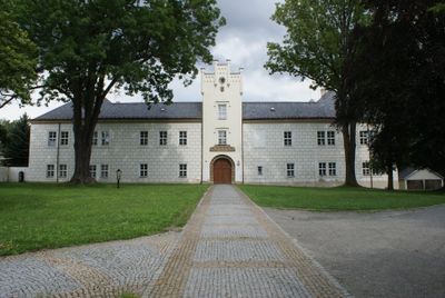 Das Schloss entstand ursprünglich als Festung und wurde 1617 von Adam Wratislaw von Mitrovice in ein Renaissanceschloss umgewandelt. Nach Beschädigungen während des Dreißigjährigen Krieges erfuhr es mehrere Umbauten und kam später in den Besitz des Prager Domkapitels.