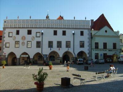 Das Rathaus beherbergt die Stadtverwaltung, die Polizeistation und ein Museum für mittelalterliche Folterinstrumente in Namesti Svornosti 1.