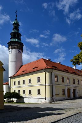 Der untere Teil des Gebäudes enthält den originalen Wachturm, der während des Wiederaufbaus 1726 von Architekt Kilián Ignác Dientzenhofer entworfen wurde.