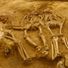 Ein Skelett zeigt Anzeichen eines gewaltsamen Todes, mit Überresten eines Holzpfahls, der durch den Hüftknochen getrieben wurde.