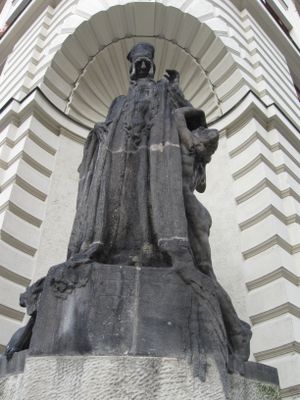 Eine Nachbildung dieser Statue von 1914 befindet sich in der Maisel-Synagoge, sodass das Kunstwerk an zwei verschiedenen Orten in Prag betrachtet werden kann.
