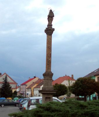 Maria column in Kladruby, sloup na náměstí Republiky před kostelem sv. Jakuba v Kladrubech, okres Tachov