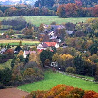 Pamětní kříž ve skalním výklenku u křižovatky silnic v Dolní Housce