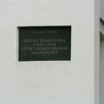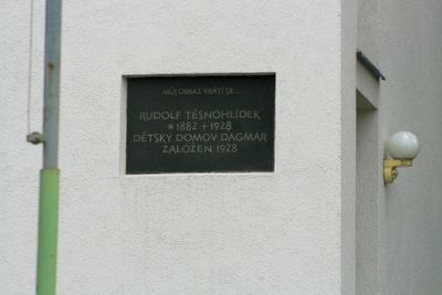 Pamětní deska Rudolfa Těsnohlídka, pamětní deska na budově dětského domova Dagmar v Zeleného ulici v Brno-Žabovřeskách