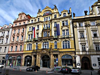 Das Gebäude wurde 1901 von Architekt Osvald Polívka als Finanzinstitution errichtet und prägt seitdem das Straßenbild der Prager Altstadt. Es entstand in einer Zeit großer Bauentwicklung und architektonischer Neuerungen in Prag.
