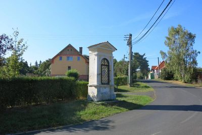 Kaplička na návsi v osadě Kadaňská Jeseň, kaplička v obci Kadaň, okres Chomutov