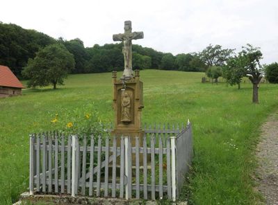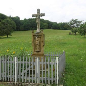 Kamenný sloup s křížkem u silnice 286 severně od Železnice