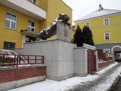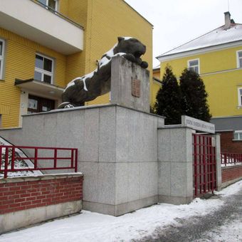 Socha pumy před Státním okresním archivem v Táboře, statue in Tábor, Czech Republic