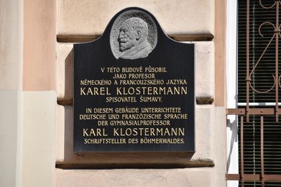 Pamětní deska Karlu Klostermannovi, drobná památka v Plzni