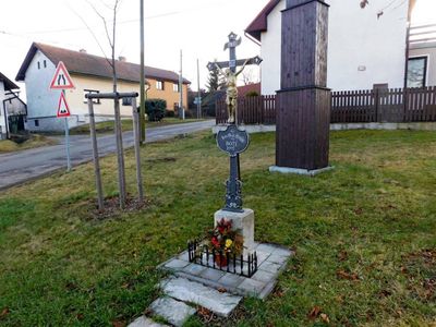 Kříž na návsi Četníka J. Bojase ve Stránčicích