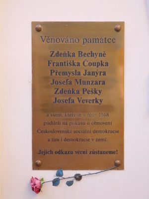 Plaque to social democrats at Lidový dům, plaque in Prague