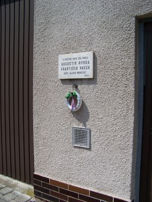 Pamětní deska Augustina Ryndy a Františka Vacka v ulici Na sypčině v Praze
