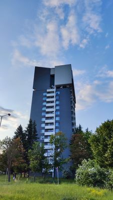 Das Gebäude wurde 1973 von Architekt Petr Brauner fertiggestellt und kombinierte erstmals in dieser Form Wohnraum mit Wasserspeicherung. Der Bau folgte einer neuen Tendenz, Stadtinfrastruktur in Hochhäuser zu integrieren.