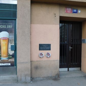 Pamětní deska Milušky Šulcové a Aloise Kally na domě Zelená 1570/14a v Dejvicích