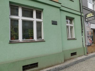 Pamětní deska Václavu Černému na domě Zelená 736/6 v Bubenči, pamětní deska v Praze