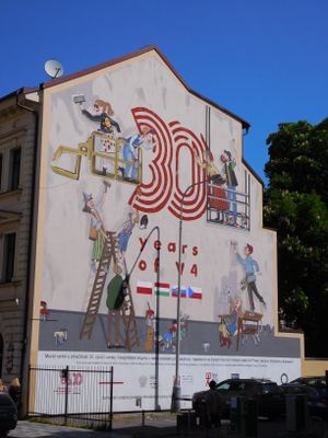 Pamětní deska rodiny Slavíčkovi na domě Kováků 1811/12 na Smíchově