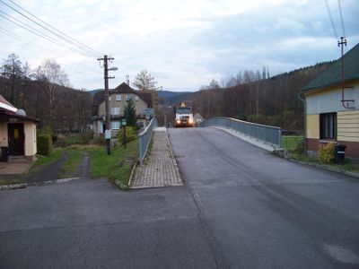 Propustek pod silnicí a železnicí v jižní části Andělské Hory
