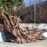 Die Stahl- und Bronzeskulptur erstreckt sich 4 Meter entlang des Flusses und zeigt Metallstreifen mit eingebetteten Objekten, die Strandfunden ähneln.