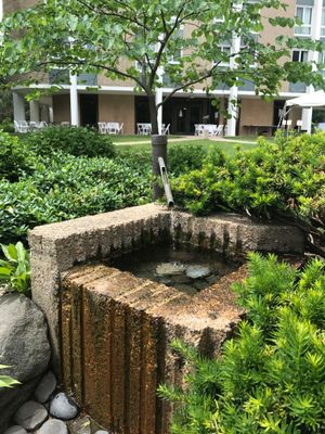 Der Jo Ryo En Garten verfügt über Steinlaternen, ein Bambusbecken, flache Steine zur Nachbildung eines Baches und weißen Kies zur Darstellung eines Sees.