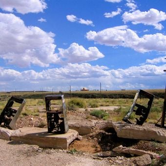 Two Guns ist eine verlassene Siedlung in der Nähe von Flagstaff und Winslow, die sich entlang der historischen Route 66 erstreckt. Die Überreste mehrerer Gebäude wie ein Handelsposten, eine Tankstelle und die Canyon Diablo Bridge sind dort zu sehen.