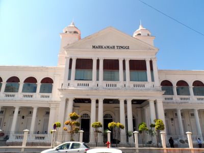 Das Penang High Court ist ein Gerichtsgebäude in George Town mit einer markanten Palladian-Architektur, die der Architekt John McCallum 1903 entwarf. Das Gebäude steht in der Light Street und zeigt klassische Merkmale dieses britischen Baustils mit symmetrischen Fassaden und eleganten Säulen.