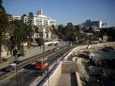 Viña del Mar ist eine Küstenstadt in der Region Valparaíso in Chile, die sich über etwa 13 Kilometer Pazifikküste erstreckt. Die Stadt verbindet Wohnviertel mit breiten Alleen, mehreren Stränden und begrünten Hügeln, die bis zum Meer abfallen.