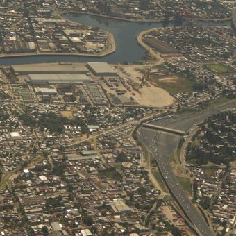 Dock Sud liegt auf 11 Metern über dem Meeresspiegel und erstreckt sich entlang des Hafengebiets von Groß-Buenos Aires mit Wohngebieten.