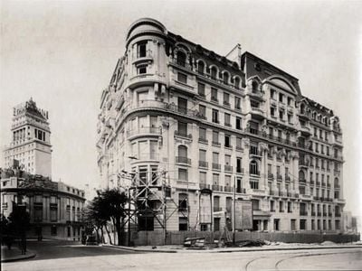 Das Gebäude wurde 1924 für Landbesitzer Alejandro Estrugamou in Auftrag gegeben und von den Architekten Eduardo Sauze und August Huguier entworfen. Es war gerade fertiggestellt, als die Weltwirtschaftskrise von 1929 die Baubranche erschütterte.