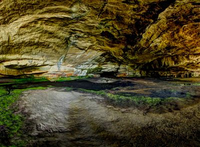 Die Höhle erstreckt sich über 1.550 Meter durch Sandsteinformationen, mit mehreren Kammern, Gängen und einem Wasserfall nahe dem Eingang.