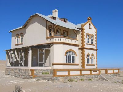 Die deutsche Kolonialarchitektur prägte die Gestaltung der Wohngebäude mit hohen Decken und großen Fenstern für Wüstenbedingungen.