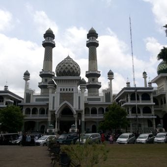 Die Moschee befindet sich in der Jalan Merdeka Barat Nummer 3 im Bezirk Kauman und bietet Räume für Gemeinschaftstreffen und regelmäßige Gebetsdienste.