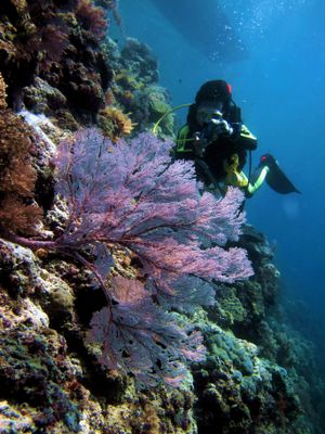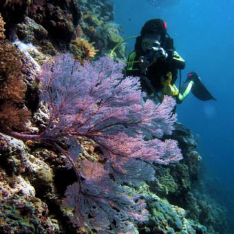 Der Park beherbergt 242 Korallenarten und 526 Riffischarten auf 21 Inseln und bildet das größte Korallenatoll Südostasiens.