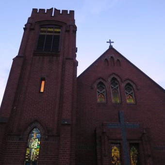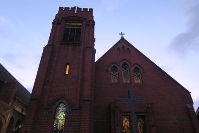 Die rote Backsteinkirche in der Burnley Street verfügt über einen zinnenbekrönten Glockenturm, ein vierjochiges Kirchenschiff und zahlreiche Buntglasfenster.