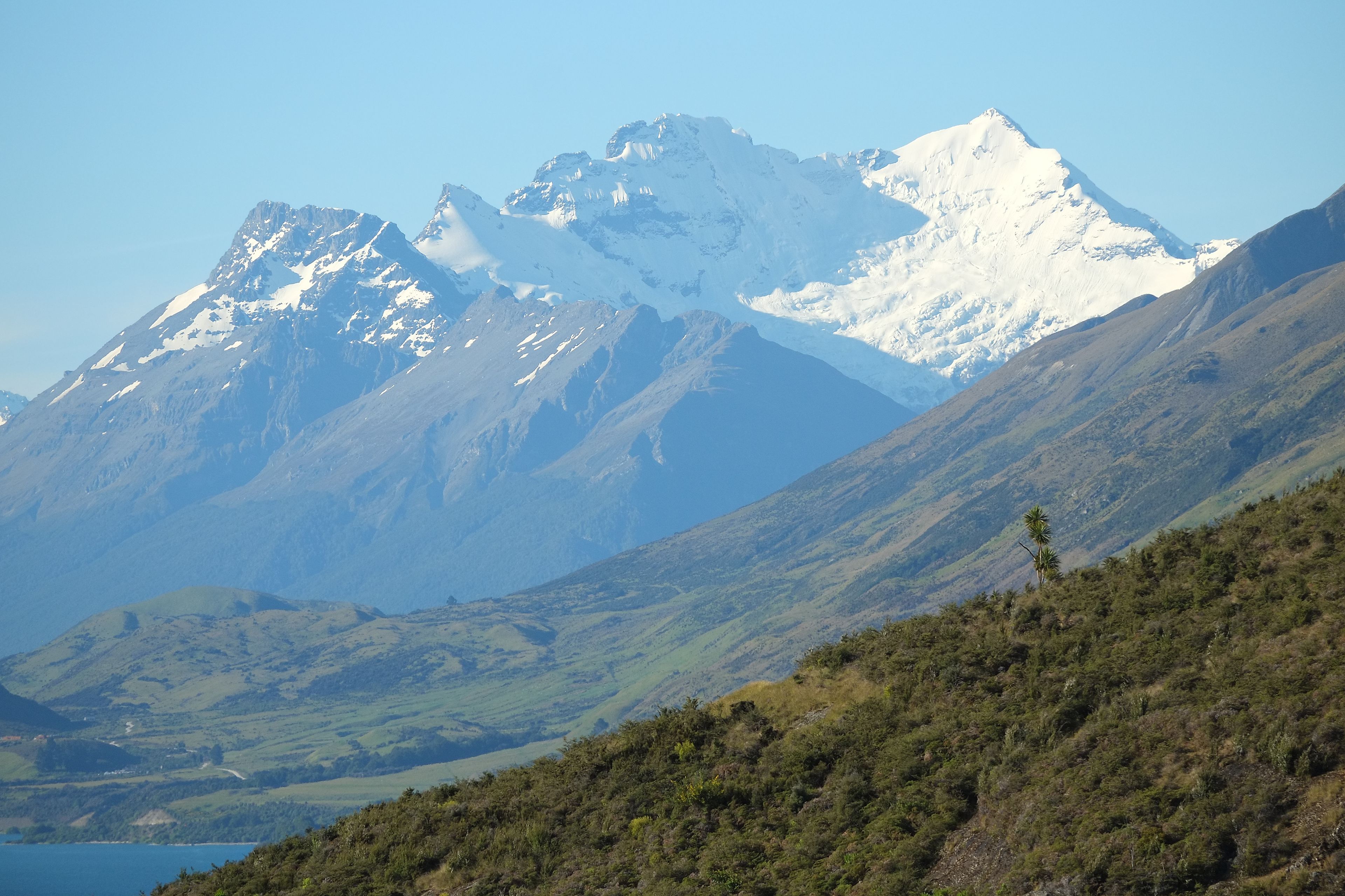 Der Mount Earnslaw weist zwei Gipfel mit einer Höhe von 2.819 Metern auf, mit einer vergletscherten Südseite zwischen den Flüssen Rees und Dart.