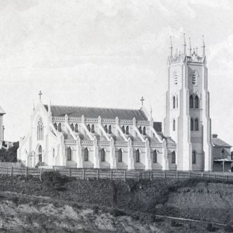 Die Kathedrale beherbergte religiöse Kunstwerke, darunter eine vergoldete Statue der Jungfrau Maria auf der Turmspitze, sichtbar aus Wellington.