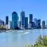 Brisbane ist die Hauptstadt von Queensland in Australien und erstreckt sich entlang des Brisbane River mit Wolkenkratzern im Central Business District und Wohnvierteln, die sich über die umliegenden Hügel verteilen. Der Fluss schlängelt sich durch das Stadtgebiet und formt mehrere Biegungen, während Parks, Brücken und Fußgängerwege beide Ufer miteinander verbinden und offene Flächen zwischen den bebauten Zonen schaffen.