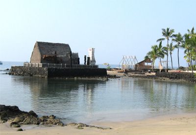 Kamakahonu ist ein rekonstruiertes königliches Anwesen in der Bucht von Kailua und erstreckt sich über mehrere Hektar Land am nördlichen Ende. Die Anlage enthält einen Tempel und traditionelle hawaiianische Gebäude, die das Leben während der Herrschaft König Kamehamehas widerspiegeln.