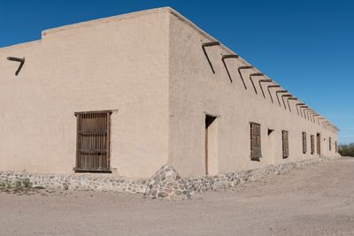 Fort Leaton verfügt über dicke Adobe-Mauern mit einer Höhe von bis zu 7 Metern und 100 Räumen, die sich um einen zentralen Innenhof gruppieren.