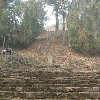 Bonampak ist eine archäologische Stätte im Lacandon-Regenwald von Chiapas, die sich über eine kleine Fläche mit einer Akropolis am Hang und einem großen Platz erstreckt. Die Tempelgebäude aus Stein gruppieren sich um offene Höfe, und das berühmteste steht auf der obersten Ebene der Hauptgruppe.