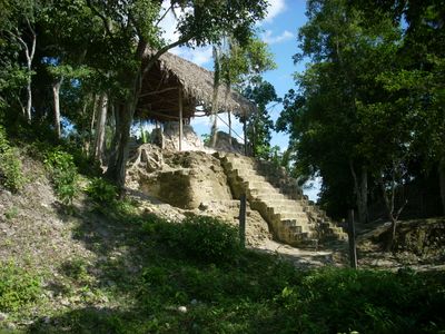 Der archäologische Komplex enthält mehrere Steinstrukturen, darunter eine Akropolis mit originalen Maya-Bodenflächen und Tempelpyramiden.