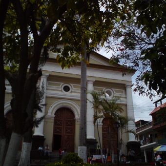 Die Heilig-Geist-Basilika steht mit einem rechteckigen Grundriss und einem Turm mit halbkreisförmiger Kuppel auf der Plaza Bolivar.
