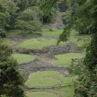 Das 232 Hektar große Monument zeigt Steinfundamente, Aquädukte, Straßen und Petroglyphen am Südhang des Turrialba Vulkans.