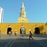 Besucher können durch die Bögen unter dem Turm gehen, die das Getsemaní-Viertel mit der Altstadt verbinden.