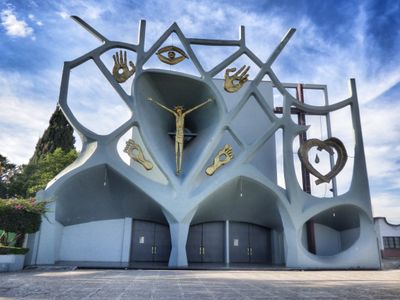 Der Tempel verbindet religiöse Symbolik mit architektonischer Innovation, mit Skulpturen von Guillermo González und Entwürfen des Architekten Francisco Aguayo Mora.