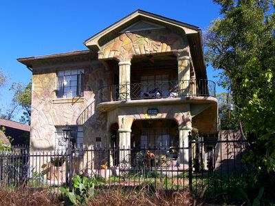 Die Residenz steht für mexikanisch-amerikanischen Architektureinfluss und verbindet den Four Square Stil mit dekorativen Betontechniken aus Mexiko.
