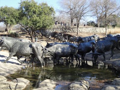 Jeder Longhorn-Stier aus Bronze in der Skulpturensammlung misst sechs Fuß Höhe und bildet das größte Bronzedenkmal dieser Art.